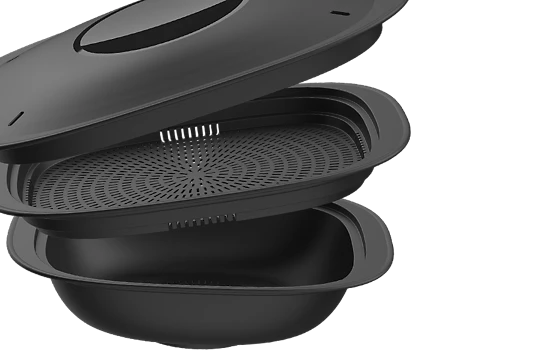 Entdecken Sie die Kunst des traditionellen Kochens mit dem deckellosen Kochmodus. Dieser ermöglicht das Garen bei bis zu 100 °C ohne rotierende Klingen – ideal für empfindliche Zutaten und aromatische Saucen. Er bietet Flexibilität und Kontrolle, sodass Sie Zutaten ohne Unterbrechung hinzufügen können.